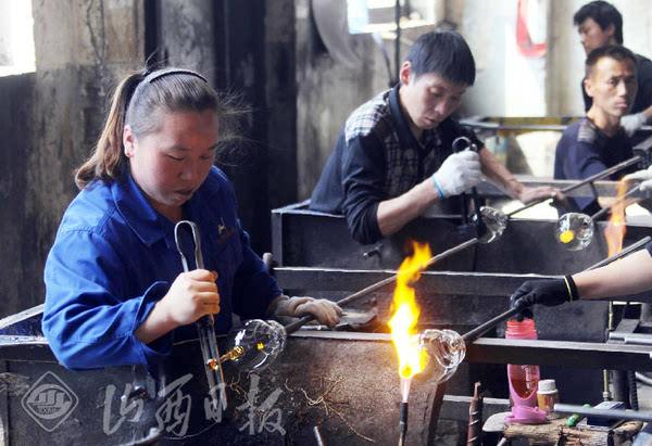 熔制.九游在线登录官网配合料在池窑或池炉内进行高温(1550~1600)加热,使之形成均匀、无气泡,并符合成型要求的液态九游在线登录官网.